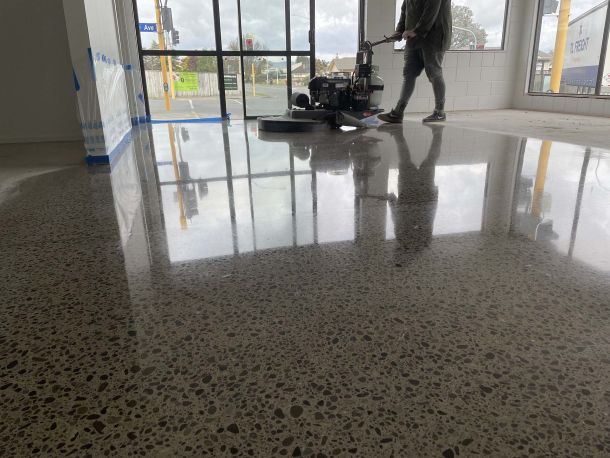 Polished concrete finishes range from Burnished, “Salt & Pepper”, medium exposure through to full exposure finish.
